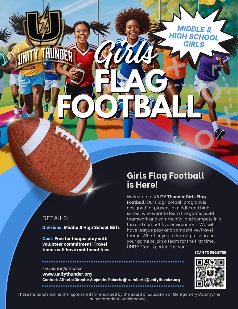 Flag football gives girls a fast-paced, exciting way to build strength, agility, and teamwork while having a ton of fun. Beyond the touchdowns and game-winning plays, the sport boosts leadership skills, sharpens decision-making, and encourages resilience on and off the field. UNITY Thunder creates an empowering, supportive environment where every girl belongs, every voice matters, and every athlete learns what it means to compete with heart. Join UNITY Flag Football and experience the incredible benefits of sports — confidence, camaraderie, and a lifelong love of the game.