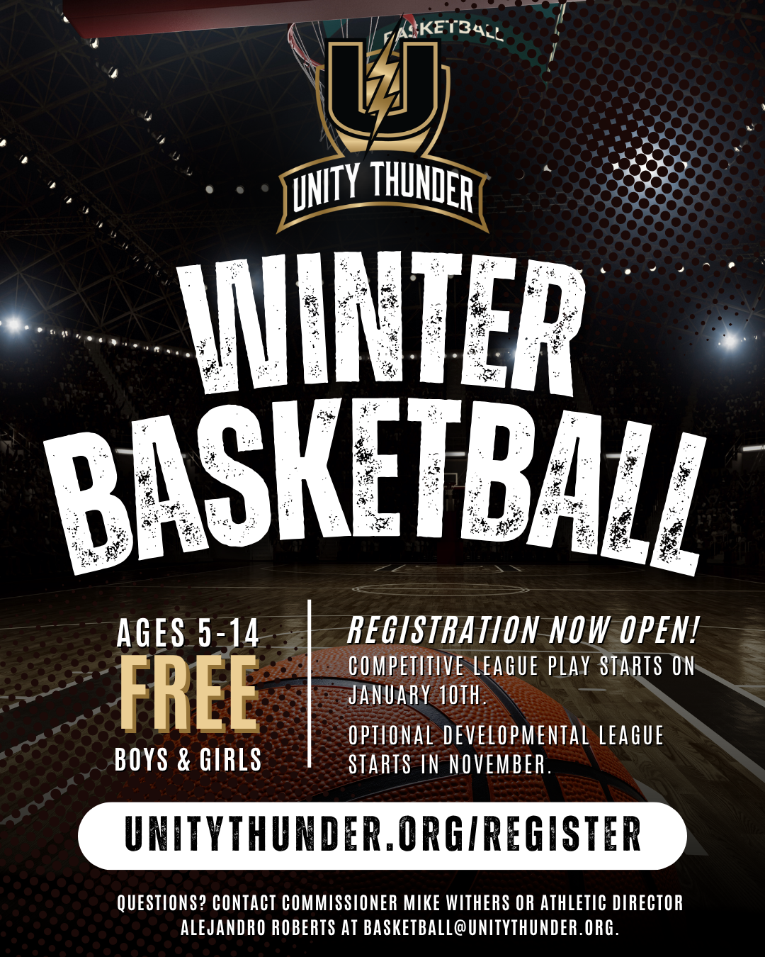 The UNITY Youth Basketball Program offers boys and girls ages 5–14 an exciting opportunity to learn the game, build confidence, and grow both on and off the court. Through skill development, teamwork, and positive competition, UNITY helps young athletes develop discipline, leadership, and sportsmanship. More than just basketball, it’s about learning the value of working together, setting goals, and building lasting friendships—all while having fun in a supportive, family-oriented environment.